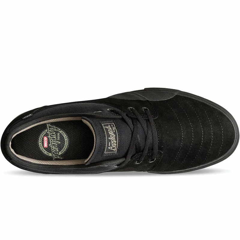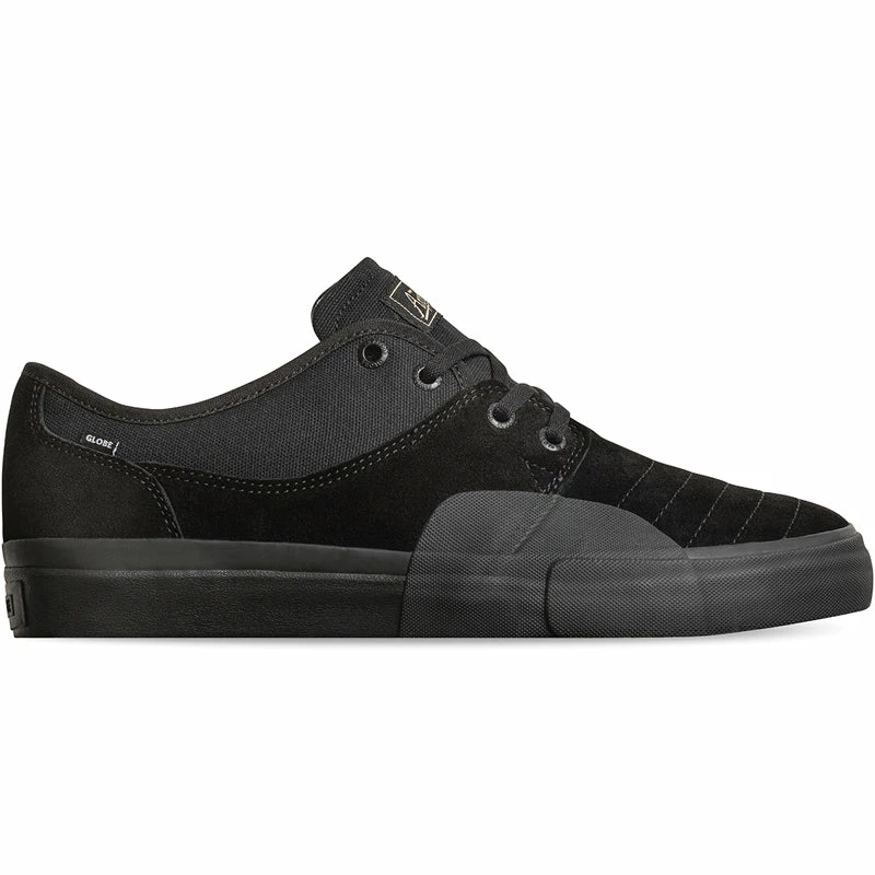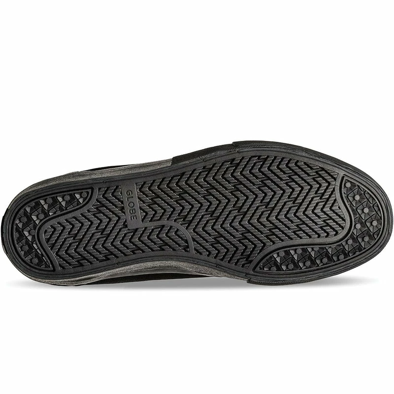 Mark Appleyard’s classic vulcanized skate silhouette with added rubber ollie patch for durability. Just like the original Mahalo, the Mahalo Plus in Black/ Black Wrap also features Globe’s Shockbed™ insole for impact control specifically formulated for Mark and Super-V™ outsole for enhanced grip and board feel. Made from suede/canvas.